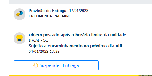 OBS: O seu rastreio estando como na imagem acima, com a informação de objeto postado após o horário limite, conta-se como pedido coletado apenas no dia seguinte. Deve-se considerar então no caso acima, que foi coletado no dia 05 e não 04/01.